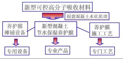 混凝土節(jié)水保濕養(yǎng)護(hù)膜是以新型可控高分子材料為核心,以塑料薄膜為載體,粘附復(fù)合而成,高分子材料可吸收自身重量200倍的水分,吸水膨脹后變成透明的晶狀體,把液體水變?yōu)楣虘B(tài)水,然后通過毛細(xì)管作用,源源不斷地向養(yǎng)護(hù)面滲透,同時(shí)又不斷吸收養(yǎng)護(hù)體在混凝土水化熱過程中的蒸發(fā)水。因此在一個(gè)養(yǎng)生期內(nèi)養(yǎng)護(hù)膜能保證養(yǎng)護(hù)體面保持濕潤(rùn),相對(duì)濕度大于或等于90%。
