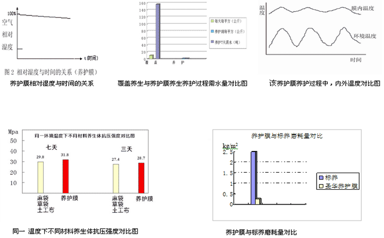 恒久保濕——養(yǎng)護(hù)期間,每平方米最少可固定0.8kg水分,膜內(nèi)相對濕度達(dá)80%以上;