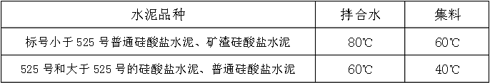 注:當(dāng)集料(即骨料)不加熱時(shí),拌合水可加熱到100℃,但水泥不應(yīng)與80℃以上的水直接接觸。投料順序,應(yīng)先投入集料和已加熱的水,然后再投入水泥。