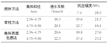 表1攪拌工藝對(duì)多孔透水混凝土性能的影響