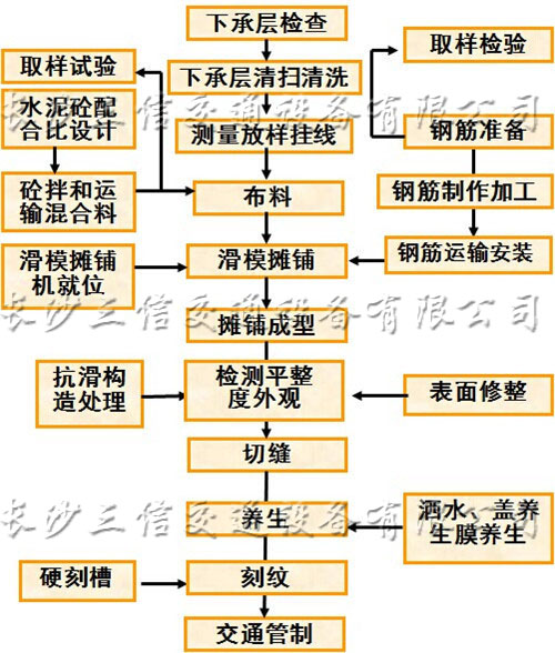 3.滑模攤鋪機(jī)進(jìn)行砼攤鋪,保證砼攤鋪質(zhì)量。