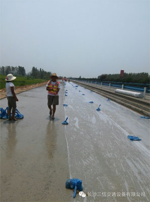 5.攤鋪成型的上基層及時(shí)履蓋薄膜、灑水養(yǎng)生,養(yǎng)生期間禁止車輛通行;