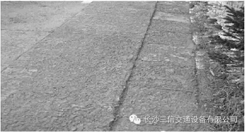 面板翹起或下沉;雨后細料從接縫和裂縫處與水一同噴出,有污跡存在。