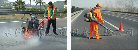 采用專用的開槽機(jī)進(jìn)行該項(xiàng)作業(yè),按照裂縫標(biāo)示,根據(jù)裂縫的寬度和深度,調(diào)整好開槽機(jī)的開槽寬度和深度,對準(zhǔn)裂縫的中線切割出均勻的U型凹槽。裂縫兩側(cè)壁至少各去除3毫米,暴露出新的粘接面。需要強(qiáng)調(diào)的是,當(dāng)瀝青路面表面層沒有足夠的強(qiáng)度抵御開槽機(jī)的切割沖擊力時(shí),不宜進(jìn)行開槽處理,而應(yīng)直接進(jìn)入下一步的工藝,即填縫。