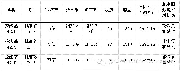 3.2不同外加劑的對(duì)比試驗(yàn)